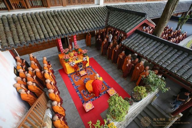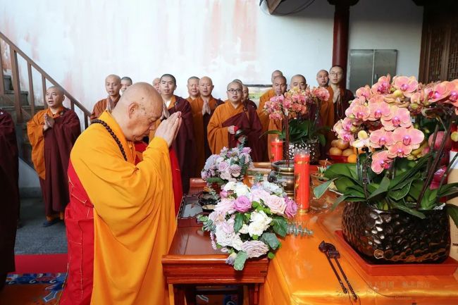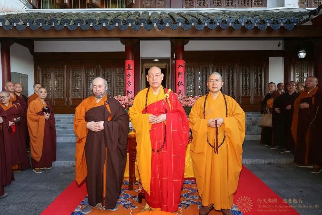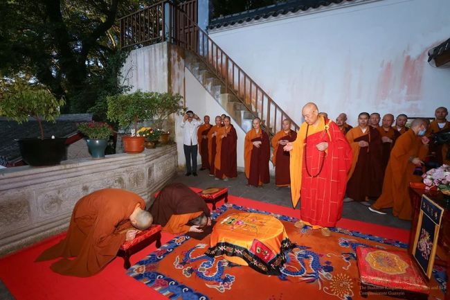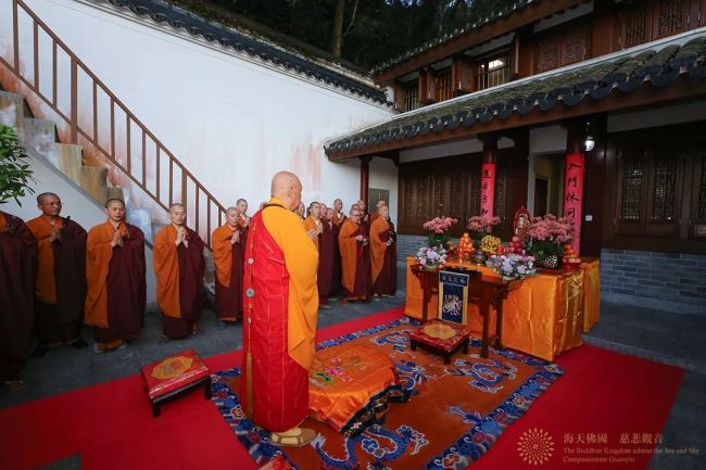 2023年11月3日,中国佛教协会副会长、普陀山佛教协会会长、中国佛学院普陀山学院院长、观音法界管理中心主任、普济禅寺方丈道慈大和尚一行前往法雨禅寺,恭迎闭一期楞严关的仁辉法师圆满出关。普陀山佛教协会常务副会长、法雨禅寺监院信光法师,普济禅寺与法雨禅寺两序大众共同见证,随喜赞叹。