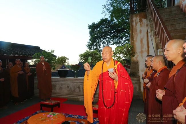 仁辉法师,1996年于湖南省永州市高山寺出家,2010年来普陀山法雨禅寺常住,2019年仁辉法师发心闭一期三年半楞严关,安心清修,养深积厚,今日圆满。