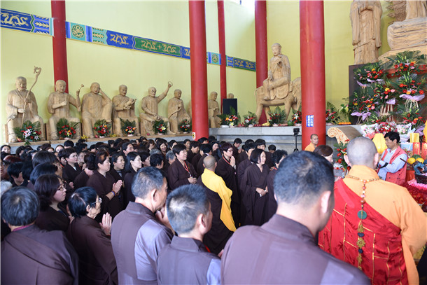 觉悟佛教网讯 2019年5月12日,农历四月初八,又一个国家级非物质文化遗产鱼山梵呗传承日来临。适逢浴佛母亲节双节同庆,山东鱼山梵呗寺如期举办了浴佛节第十届国家级非物质文化遗产鱼山梵呗传承日活动。为纪念佛陀诞生感念慈母恩德,进行了浴佛、三皈五戒、出家剃度、传法授徒、梵呗培训等系列文化传承活动,续佛慧命、生生不息。来自河南、河北、北京、浙江及五台山、九华山等全国各地专家学者、梵呗学人600余人纷纷前来观摩,参加浴佛,洗涤身心,当下清净。庄严殊胜,历经三日,功德圆满。