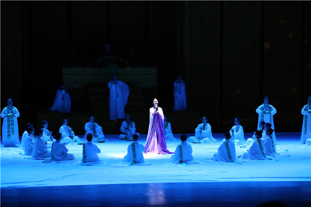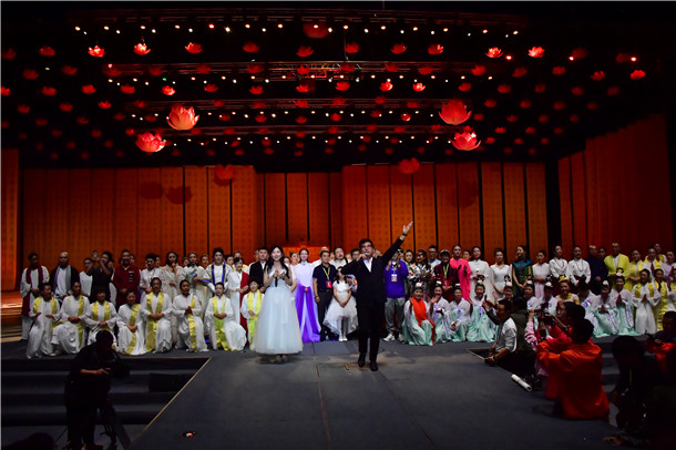 高音天王春雷演唱了《吉祥》、周占超《佛音》、宁可《山歌好比春江水》及《五台八大套》、《点赞组合》臧鑫格、臧大为演唱了《点赞》,最后以数十名色空艺术使者共同演奏的《我和我的祖国》将梵音艺术节开幕式推向高潮。