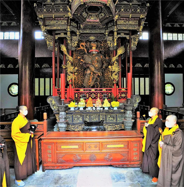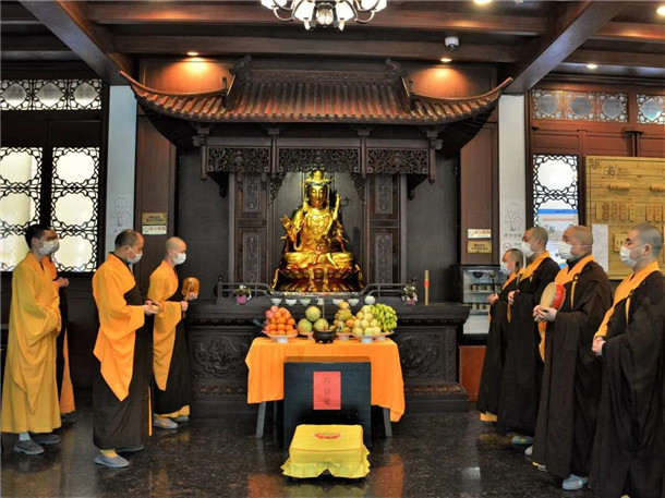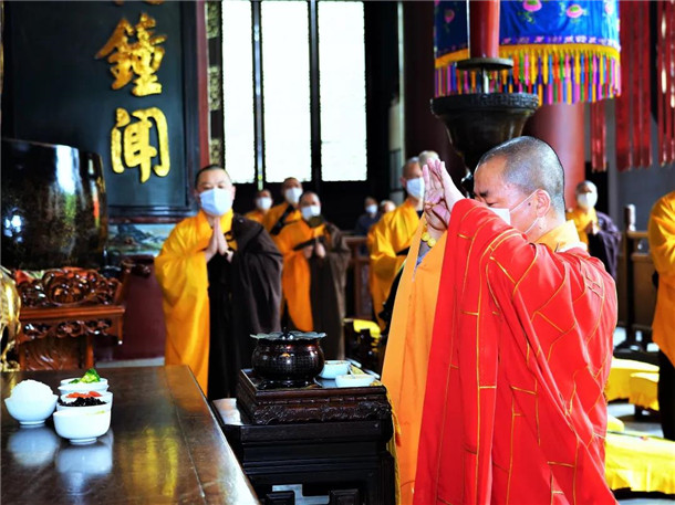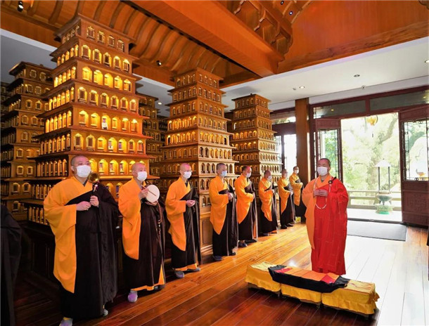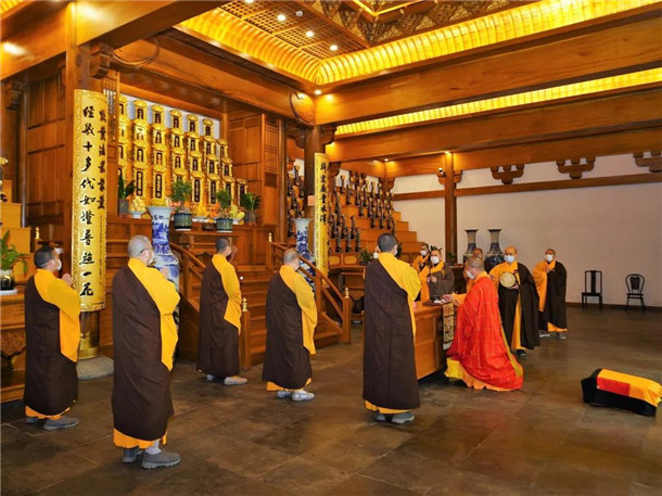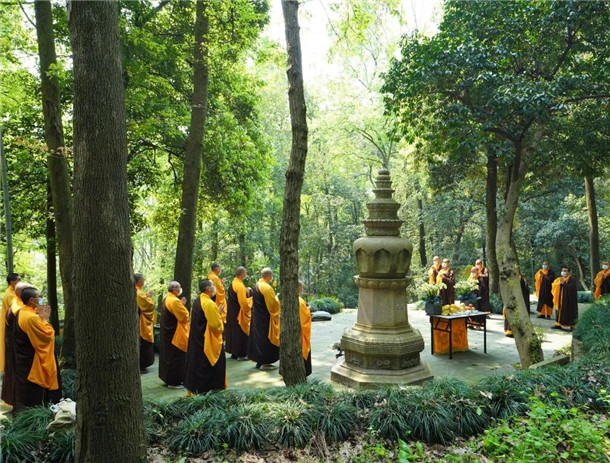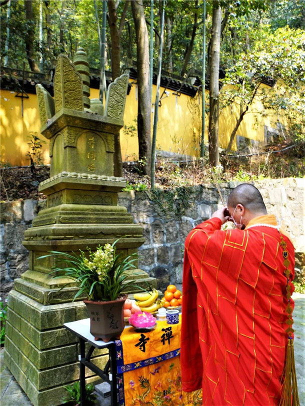 是日,杭州灵隐寺常住法师分别前往灵隐寺祖师塔院、祖师殿、涵莲堂和伽蓝殿、韦陀殿、十方苑等上供,祭祖扫塔,缅怀历代祖师住世弘法、续佛慧命、荷担如来家业的甚深功德。