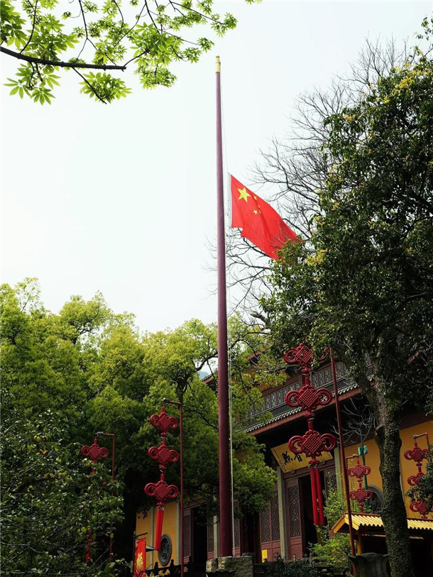 觉悟佛教网杭州讯 2020年4月4日,清明节,杭州灵隐寺降半旗,以表对抗击新冠肺炎疫情斗争牺牲烈士和逝世同胞的深切哀悼。