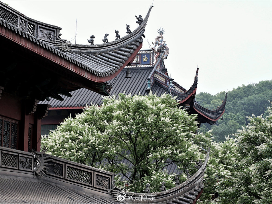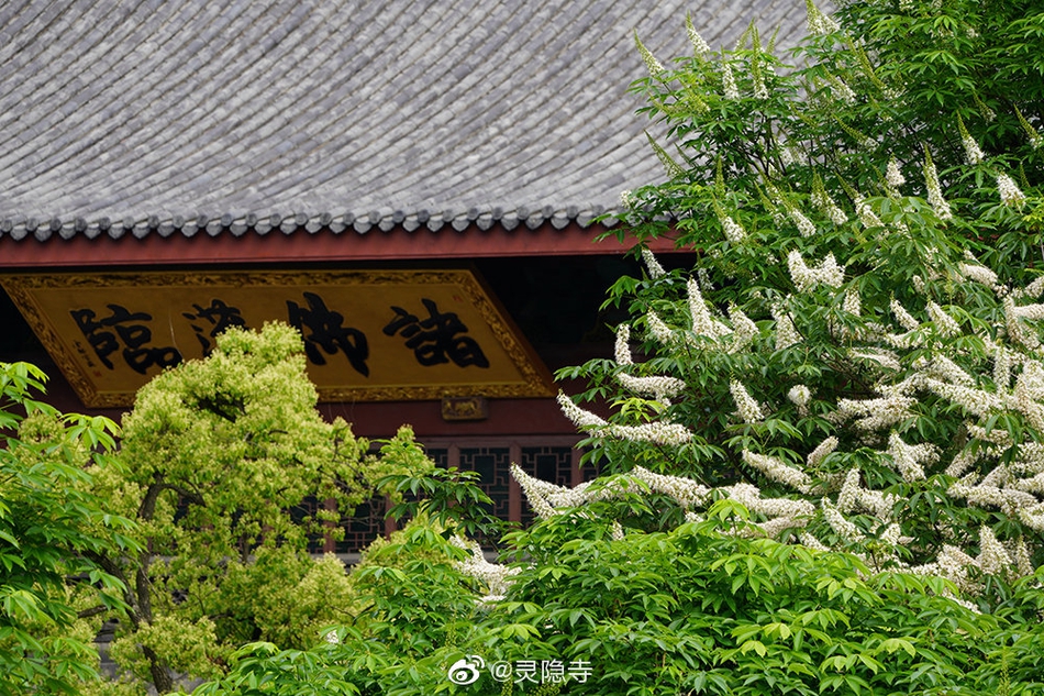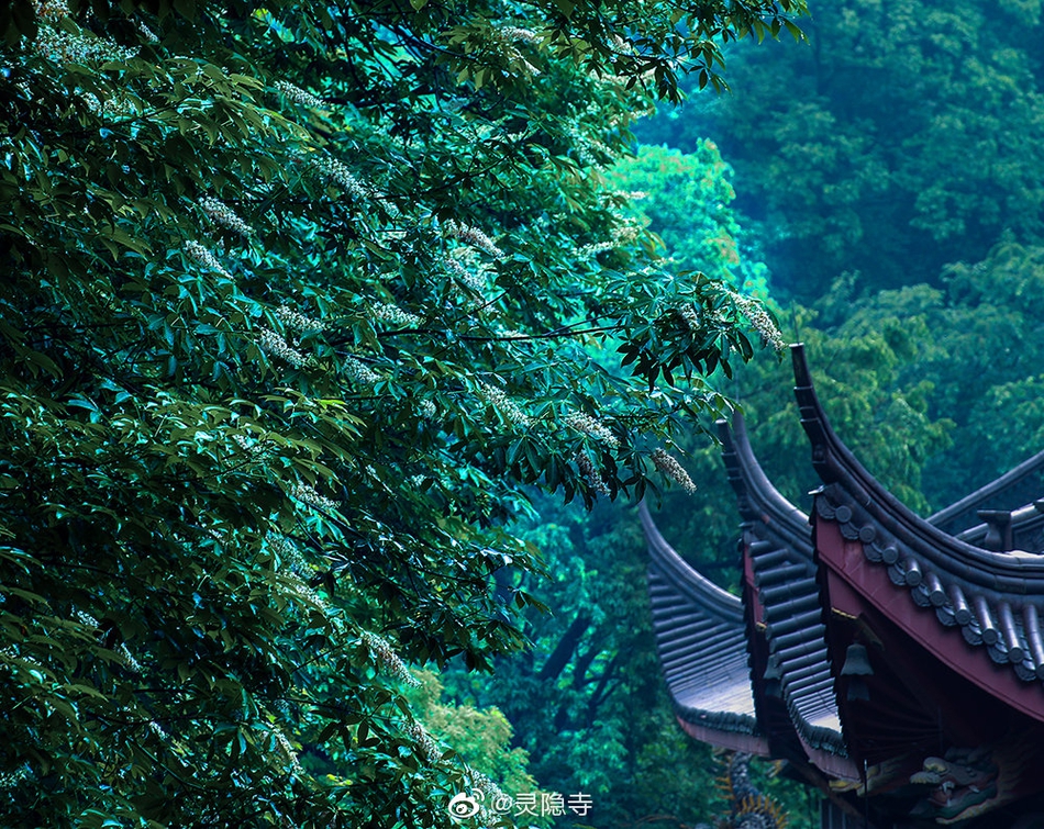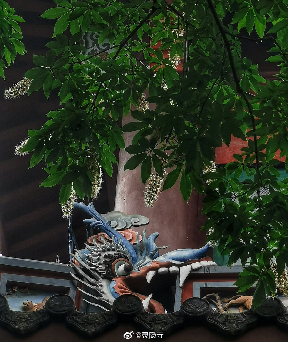 娑罗树与佛教有着很深的渊源,每年农历四月初八开始,娑罗树开始进入盛花期。我国许多古刹名寺都植有娑罗树,杭州灵隐寺更胜之。五月的杭州灵隐寺,200多株娑罗树渐次开花。娑罗树冠圆大,枝繁叶茂,丛花满树,遮天蔽日,蔚然壮美,令人赞叹。 (图片来源:灵隐寺)