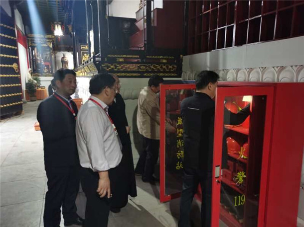 觉悟佛教网连云港讯 5月14日,连云区政协安全生产民主监督活动小组一行领导在区政协副主席程洪和区委统战部副部长、区民宗局局长金立华的带领下,对法起寺的安全专项整治工作进行了督查。一行领导先后参观了法起寺的微型消防站、消防器材,了解了法起寺的消防疏散安全、消防人员队伍等情况。