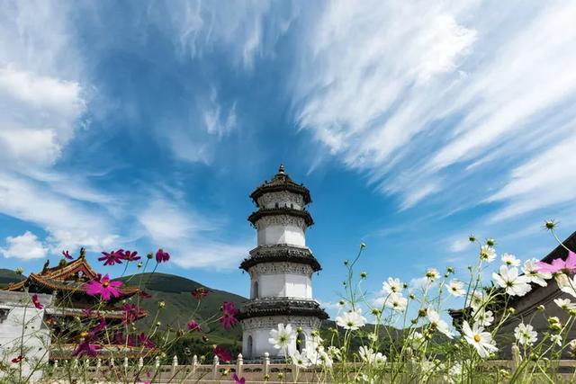 塔高五层,约25米,东面开门,各层雕有斗拱和塔檐,每层各角有风铃18个,随风会发出清脆的响声。登上该塔可以远眺四方风景。