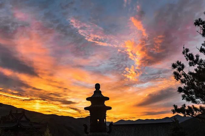 据《清凉山志》 载:唐代高僧法照在此见到竹林,云为佛法显灵迹,因创寺,并取名为竹林寺。历代予以重修。
