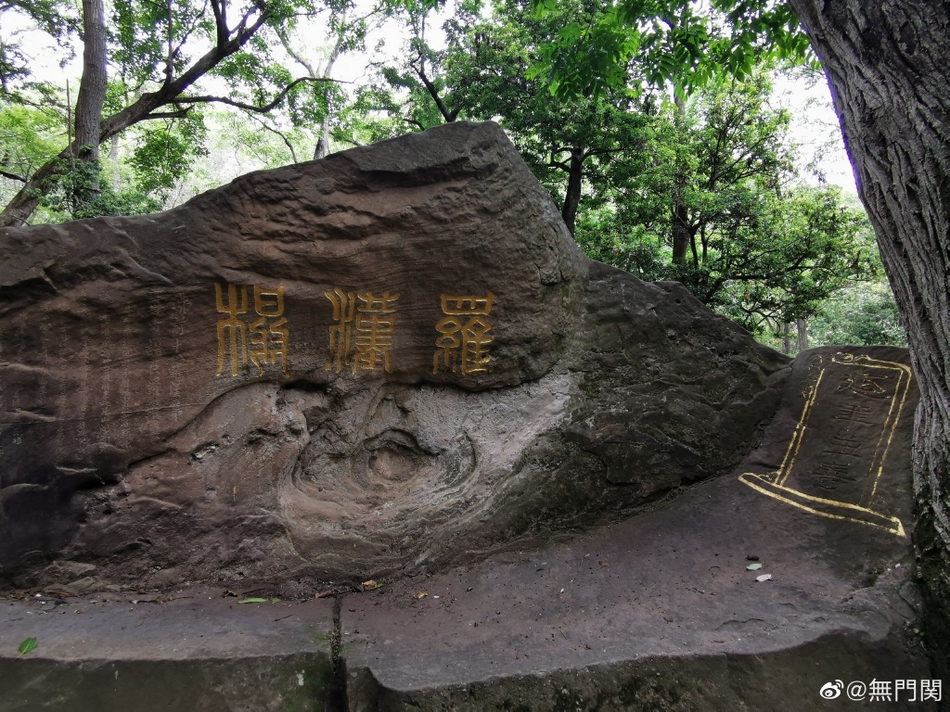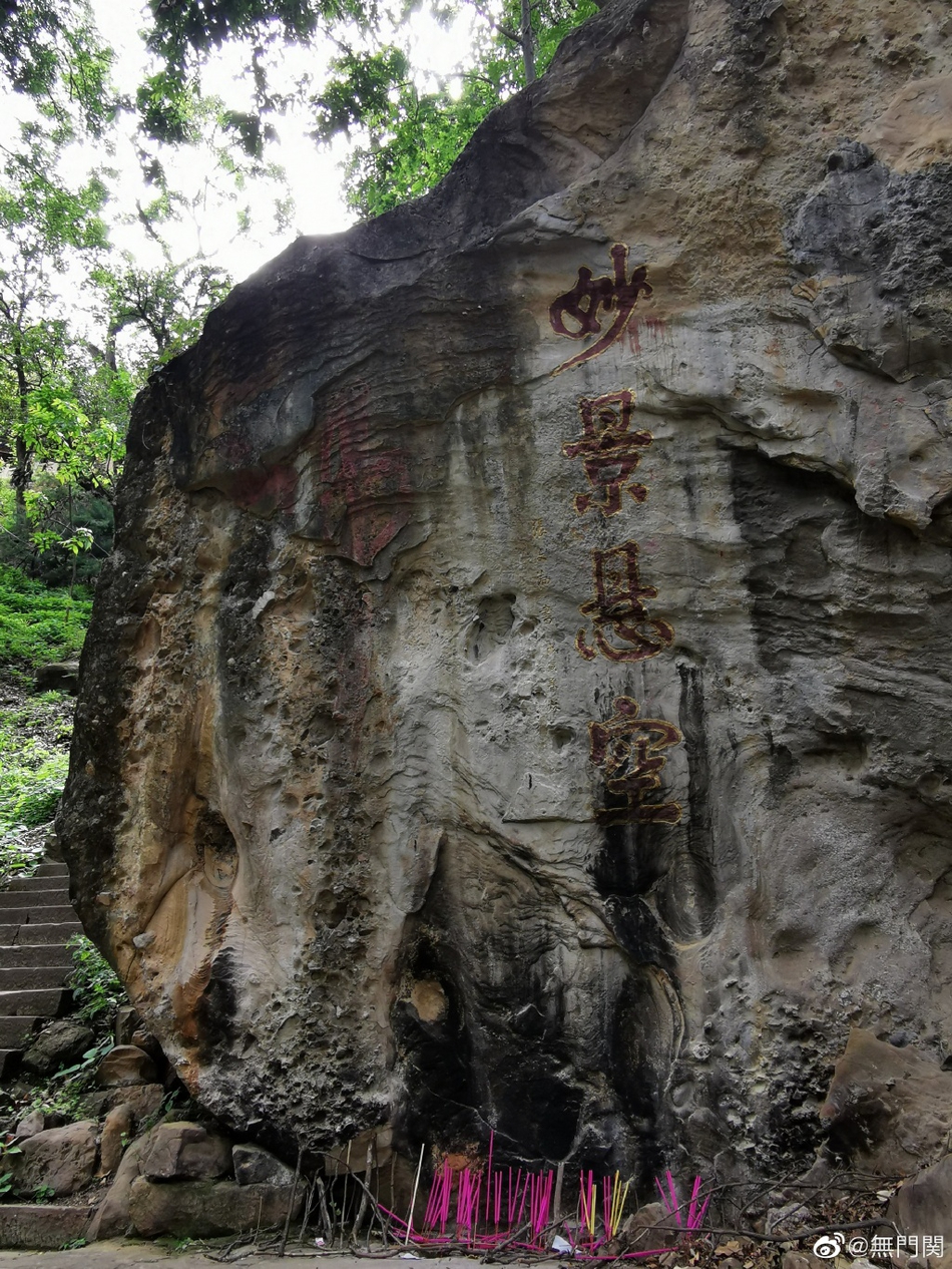 宝相寺的景观很有特点,它以寺附崖窟,高峻险奇,令人难以忘怀。山腹的大殿依崖而建,每天雨天,山水四漫,飞瀑直下,直落寺前天井。如遇晴天,则蓝天白云石势惊天。崖上布满题刻诗章:“南州灵岩”、“眼中有宝”、“佛都”、“片云何处”、“非人间”等等。从第二层盘旋而上,至第三层,无房,仅有石洞,山水滴喀,汇为小池。第四层,有阁内塑像,阁前有石香炉,有矮栏,凭栏下视,老立虚空。从这里至上边一层,虽仅有五六十米,却都是陡险的猿径鸟道,基本上是缘岩凿石,斗折蛇行。