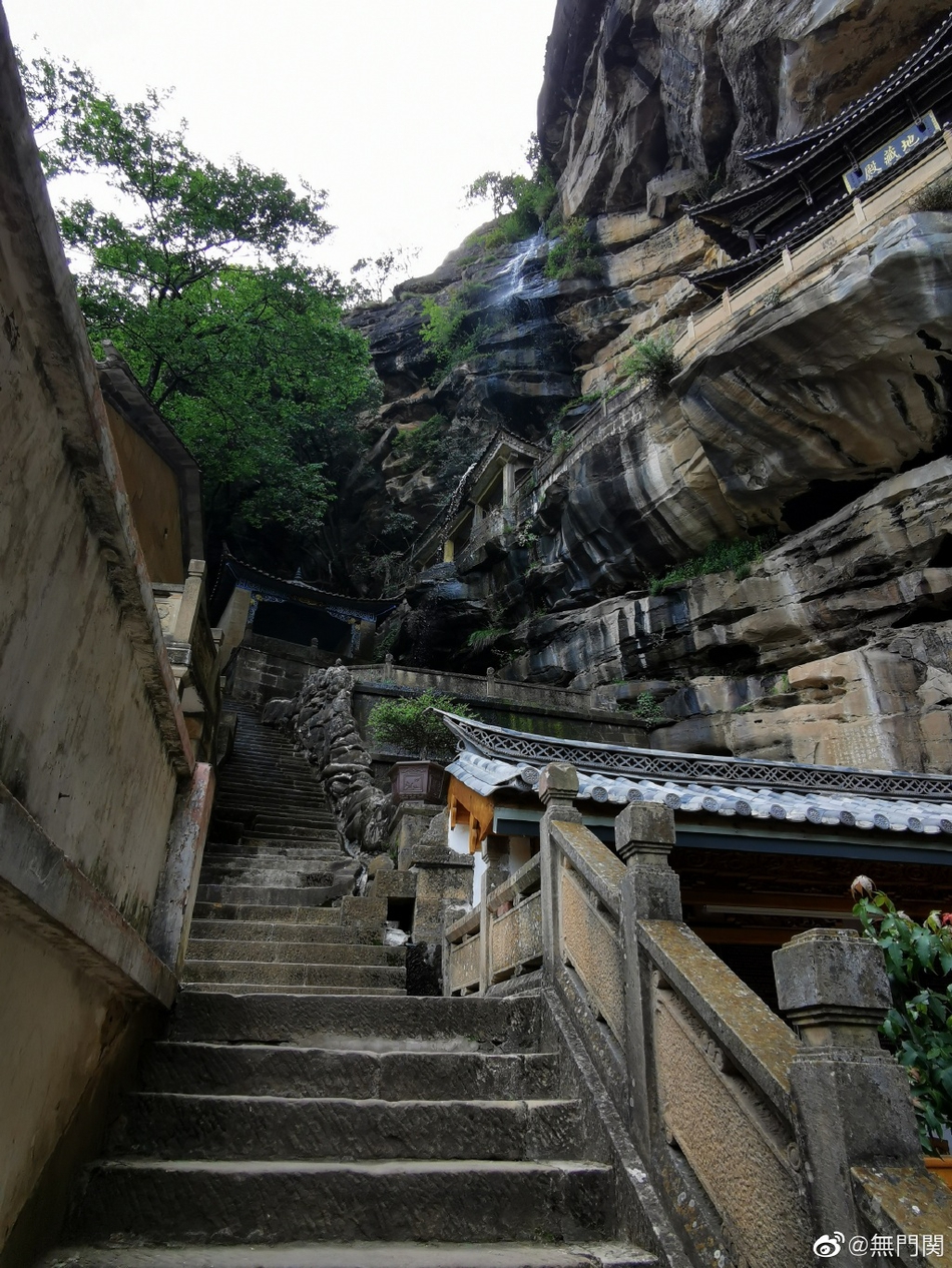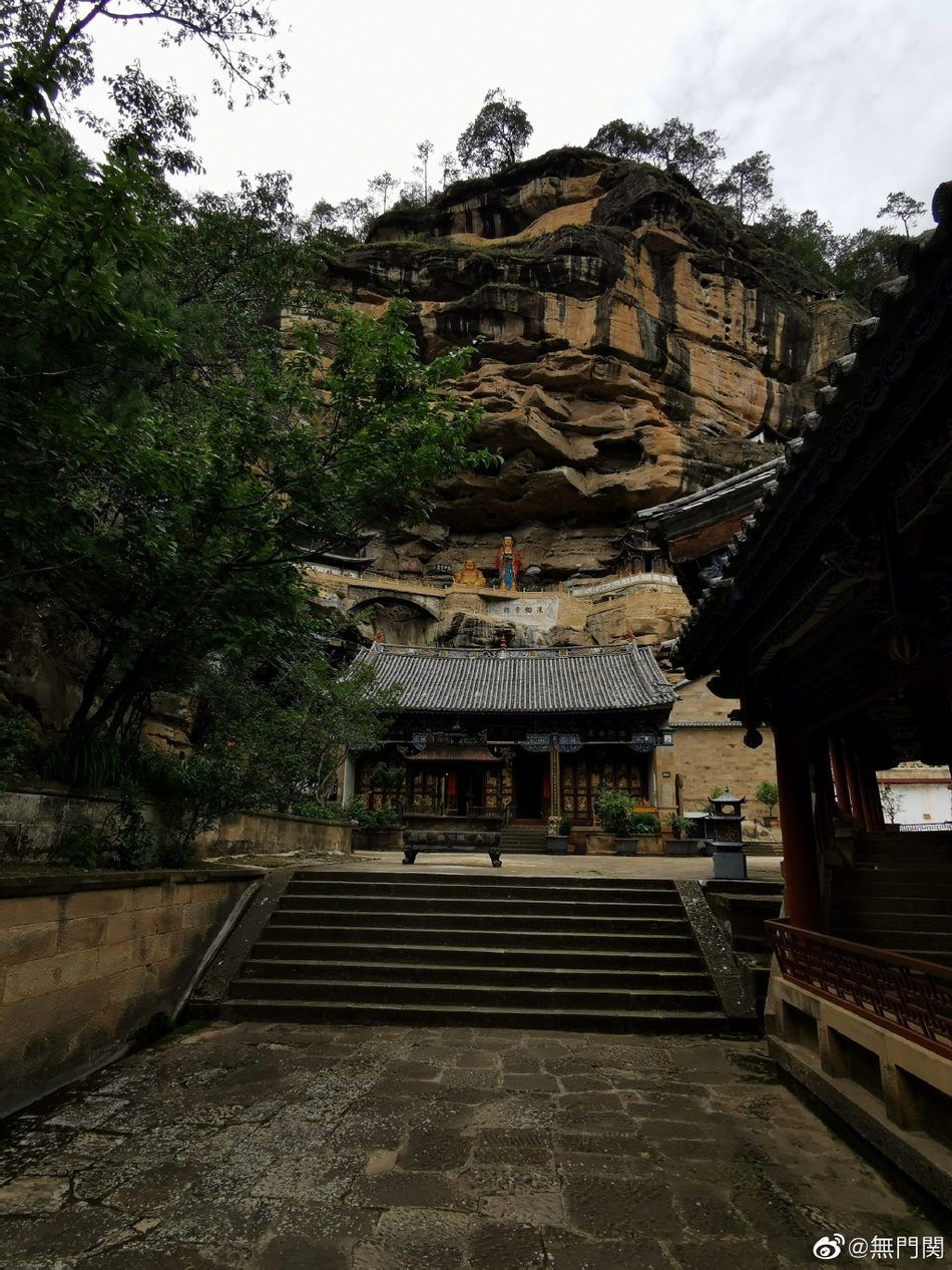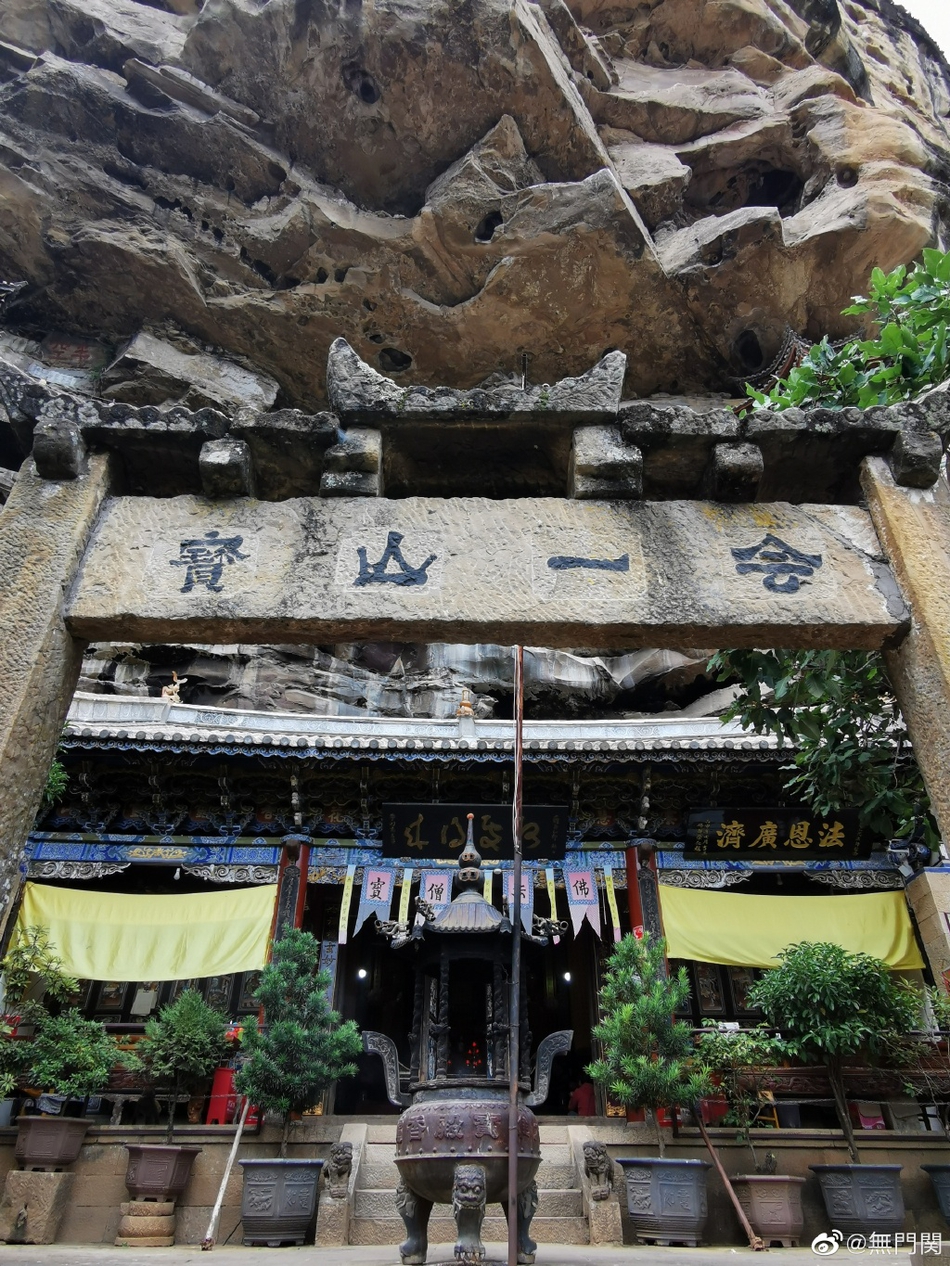 云南宝相寺又名石宝寺,因建筑奇险,被誉为“云南的悬空寺”。为明正统年间鹤庆土知府高论所建,寺建在佛顶山高耸险峻的悬崖上,令人目眩,寺坐西朝东,进山门而至天王殿,大雄宝殿均层层升高,弥勒殿与玉皇阁则凌空建造在崖内,需从左右攀岩扶壁方能到达。