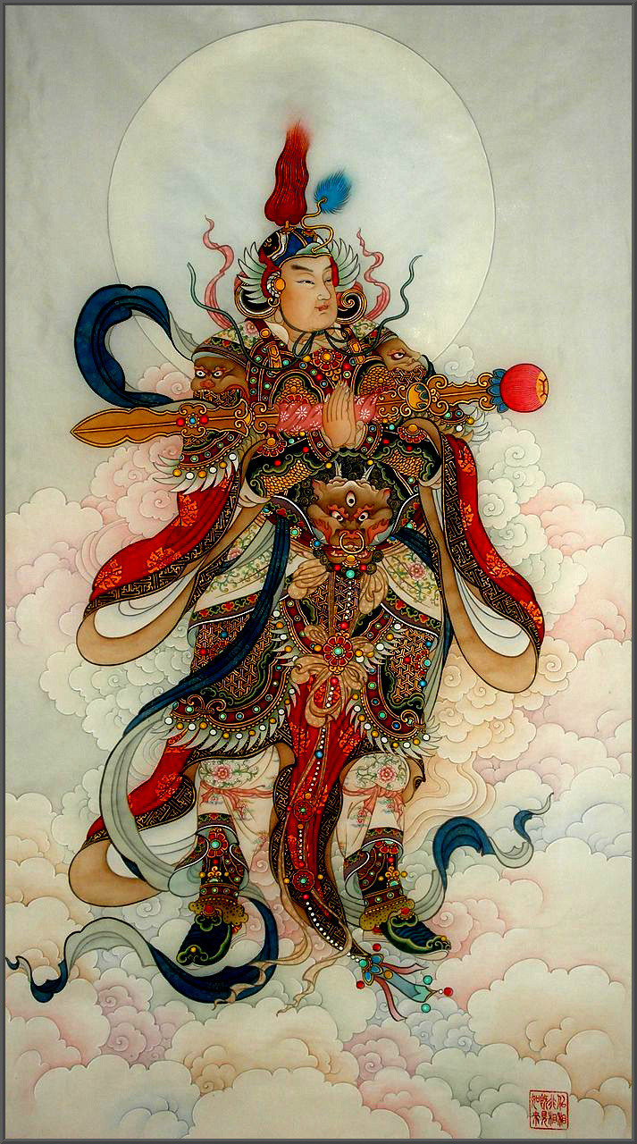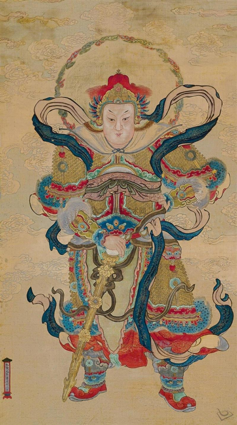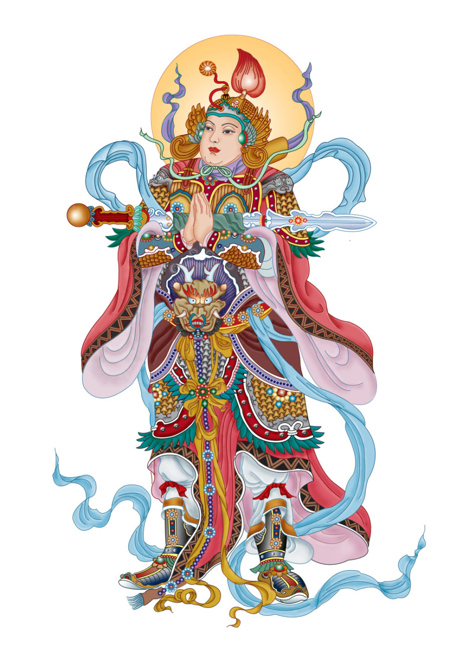 汉化的韦驮天为穿戴盔甲的少年武将形象,手持法器金刚杵,或双手合十将杵搁置肘间(表示该寺为十方丛林,接待寺),或以杵拄地(表示该寺为非接待寺)。