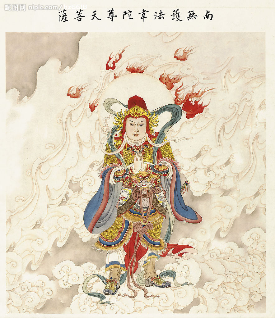 韦驮菩萨心咒:嗡。韦驮。拉扎。沙娃。悉地。吽