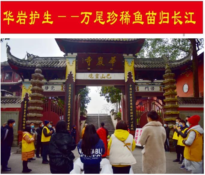2020年12月23日下午,重庆市华岩文教基金会举行“华岩护生-万尾珍稀鱼苗归长江”大型公益放生活动。在华岩寺举行放生仪式后来到大溪沟码头嘉陵江水域在渔政等相关部门的指导下进行鱼苗放生。