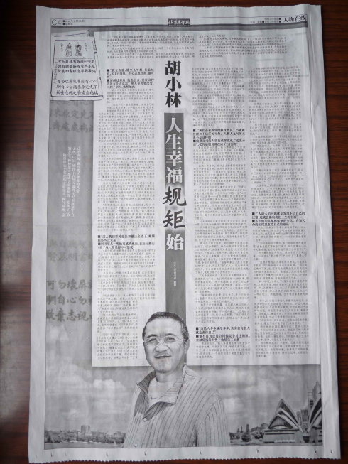 “我这个人一直在找幸福,实现自己的价值,本来是好事。当年插队的时候,我想最幸福的就是从农村出来,弄一个城市户口。后来出来了在一个法院当书记员,可以高考了,我又觉得只要考上大学,有学上最幸福。我在合肥上大学,家在北京,当时户口管理制度很严,要不然分配回去,要不然考回去。我找了一个对象,是外地人,她有一个指标分到北京,我就必须得考回去。研究生考上了,到了北京又觉得迷茫。那时候开始改革开放,开始觉得没钱不行,一个月54块钱,又有小孩,哪够啊?有钱最幸福,一定要挣钱。家里也有点背景,挣了钱,又说出国好,流行换国外身份,等移民了还空虚,结果得了癌症了。35岁这年胡小林被确诊为肺癌,医生告诉他三个月都过不去。他万念俱灰,躺在床上一个星期起不来,心里祈求:只要让我活着,扫大街都行。没想到手术之后,经过八次化疗,两万分之一的几率,他活过来了。
