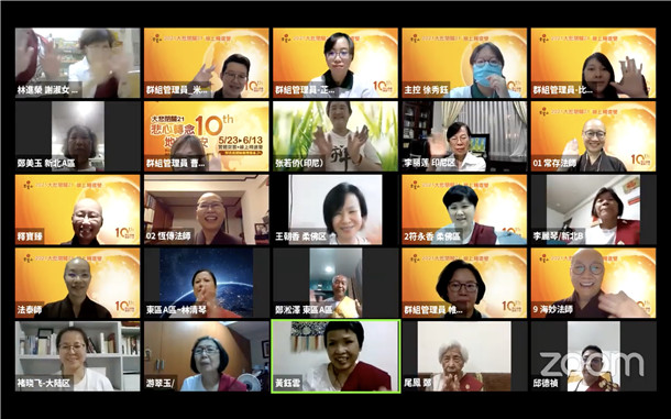 为期21天的灵鹫山大悲线上精进营,6月13日圆满共持诵〈大悲咒〉4,981,574遍,全数回向地球平安;自2012年迄今,累计持诵21,069,551遍,今年并举行大悲10周年学员、志工授勋。为延续清净心,自7月开始,每月的第一个周六举办〈大悲咒〉线上共修,期许信众们持续精进,发大菩提心,实践菩萨道。