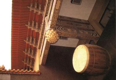 入山门东钟西鼓,是从坐北朝南的方向来看,即左钟右鼓。所谓「晨钟暮鼓」以钟声能使人警悟,发人省思;闻钟声时,可停止受苦,故于敲钟时,心存恭敬,愿地狱众生能藉此钟声暂离涂苦。鼓于印度多作为报时、警报之用,传说忉利天善法堂之鼓,不打自鸣,闻其声者皆起惧恶生善之心,故称天鼓。击鼓时心中观想:鼓声如天降甘霖及清风徐徐,「一鼓一世界」雨量风势皆如众生所愿,则风调雨顺、国泰民安。