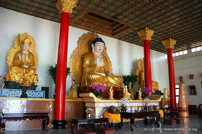 该寺大殿内外连同回廊约有三百坪,大殿中供有释迦牟尼佛,两侧有观世音菩萨及地藏王菩萨之庄严法像 。供桌上的铜制大罄”,是日据时代昭和十四年四月恭造。而悬挂殿内之“大钟”大鼓”暨寺前右斜坡旁之地藏王菩萨石雕立像,系在大正十五年八月建造的。这些“古物”值得游客们发思古之幽情,且了解早期在籣阳地区佛教宏法之艰辛历程。