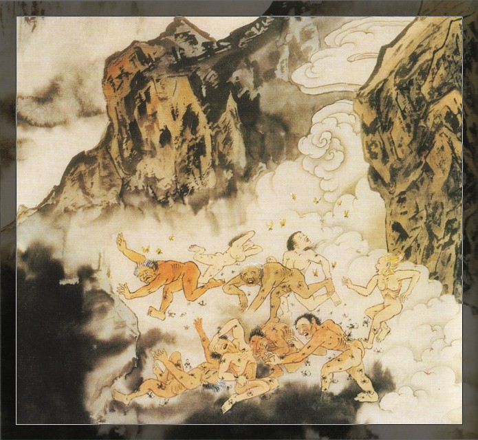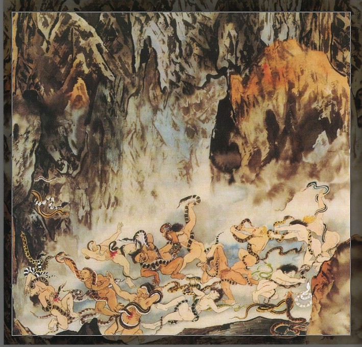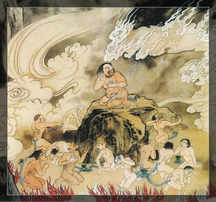 《玉准》云:以仇恨害命,嫁祸于人;恃才傲物、诳尫嫖荡、计谋诬人丧命者,凡造此罪恶,死后归入是罪。观此狱中,罪人被层层铁鸦分分噉食,死而复生,生而复死,其苦无有穷尽。