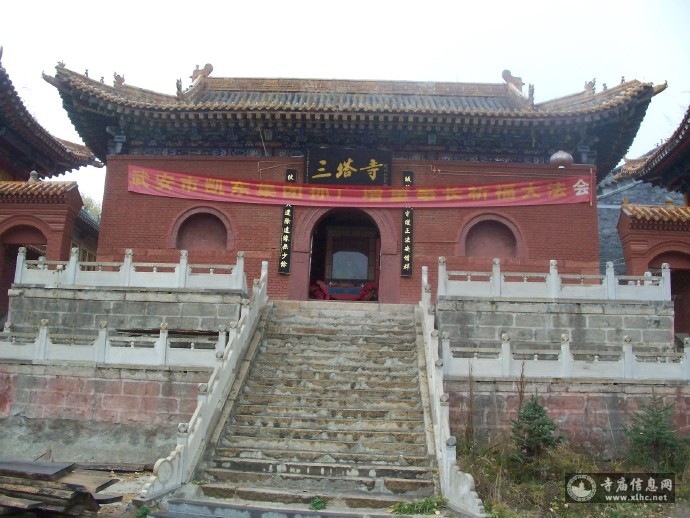 五台山三塔寺位于灵鹫峰,紧邻五台山名刹大显通寺,于大白塔毗邻,周围遍布佛塔寺庙。该寺建于明代万历年 间,由我国历史上禅宗高僧了尘施工建造。明神宗之母李艳妃多次亲往朝拜,巍巍然三座古塔便是明代帝王嫔妃礼拜后所赐赠建造。大清年间,从宁波而来的一代高 僧贡嘎上师支持黄教领袖寺庙菩萨顶后,又将三塔寺修葺一新,三塔寺便成为五台山黄教道场,并深受康熙、雍正两位皇帝重视。1986年,照圆法师开始住持该 寺。当时,十年动乱刚刚过去,寺院甚是破败,照圆法师便与僧众在原址上复建殿宇僧舍,补充塑造佛像,现在已经初步形成一处显密并研的庄严道场。