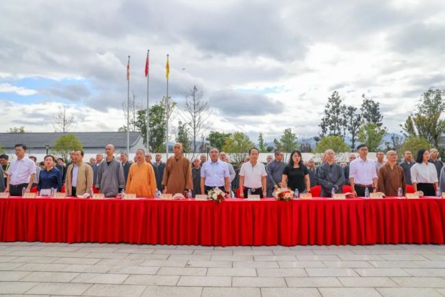 浙江省民宗委宗教三处处长郭家明出席庆典并讲话。中国佛教协会副会长、雪窦山佛教协会会长、浙江佛学院院长怡藏大和尚,浙江省佛教协会秘书长金幸祥,大慈禅寺住持、浙江佛学院(总部)副院长妙治法师在庆典上致辞。
