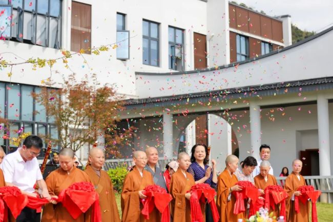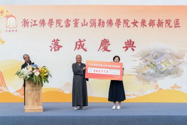 庆典上,近三十位嘉宾共同为新院区落成剪彩。宁波同泰嘉陵有限公司向女众部捐赠善款12万元,支持佛学院更好的建设与发展。