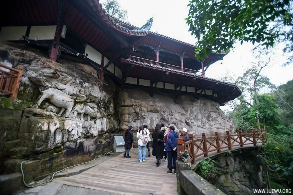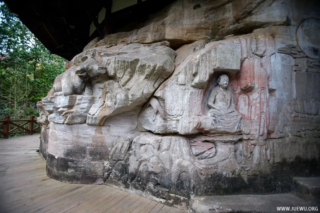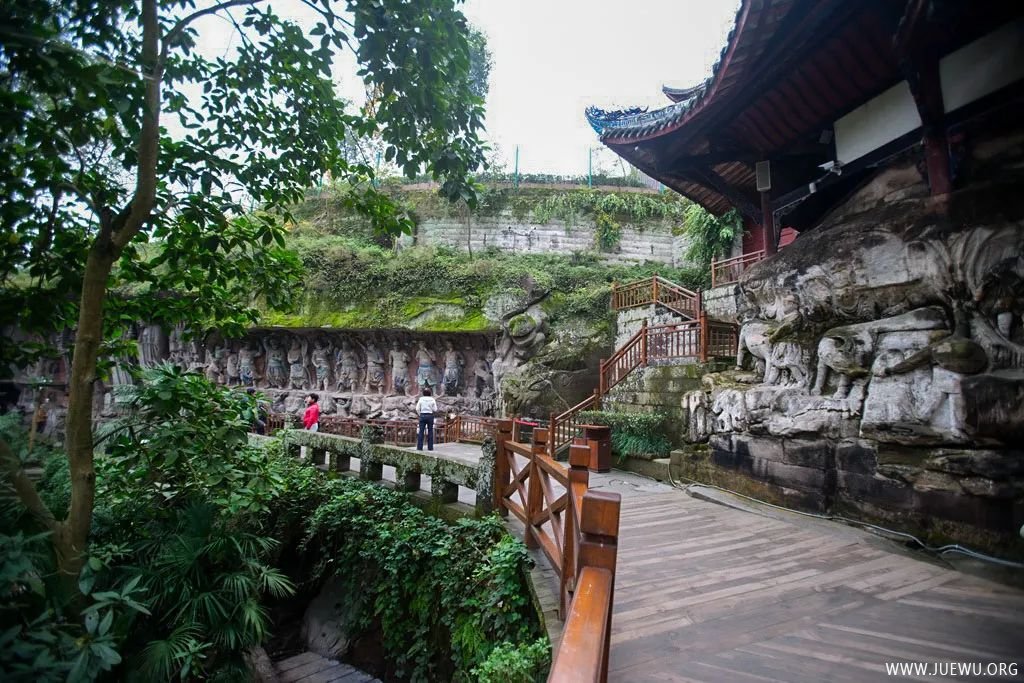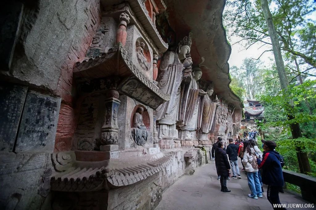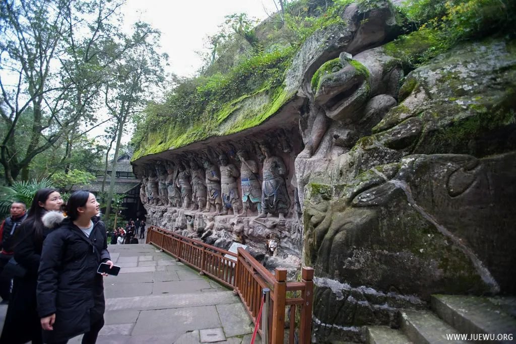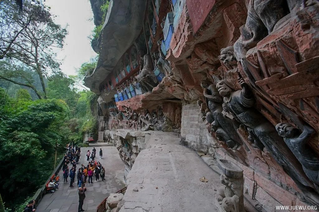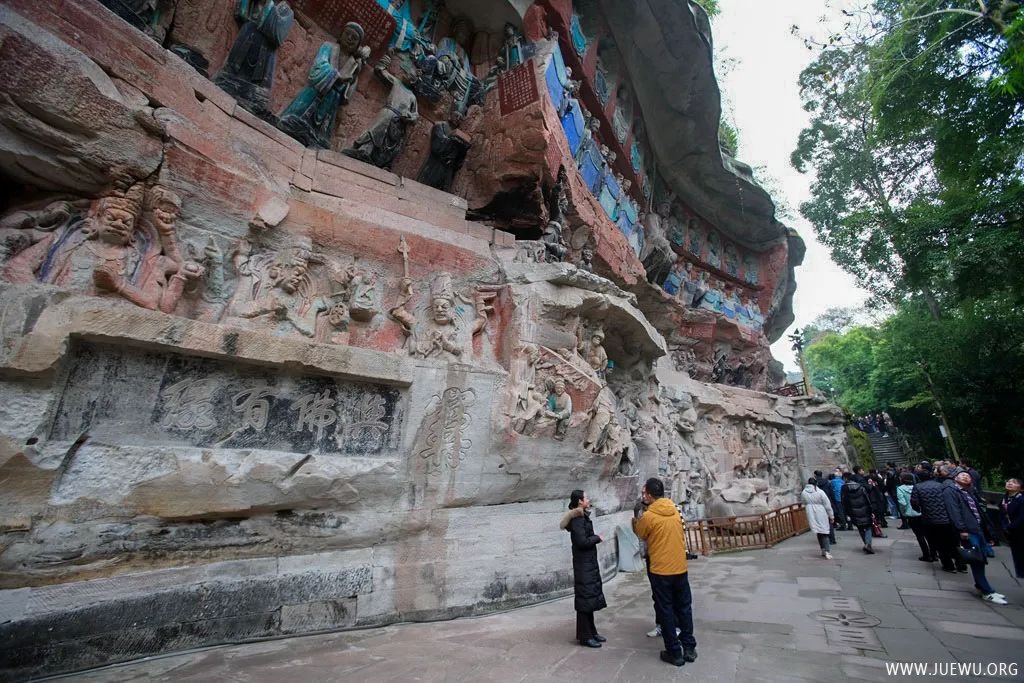 因时间和体力的关系,虽然大足石刻分布在多处,我们只游览了最具代表性的宝顶山摩崖造像。它位于重庆市大足区宝顶镇,以大佛湾为主,包括小佛湾、广大山、龙潭、松林坡等处,凿于南宋淳熙六年至淳祐九年(1179~1249年),历70余载。