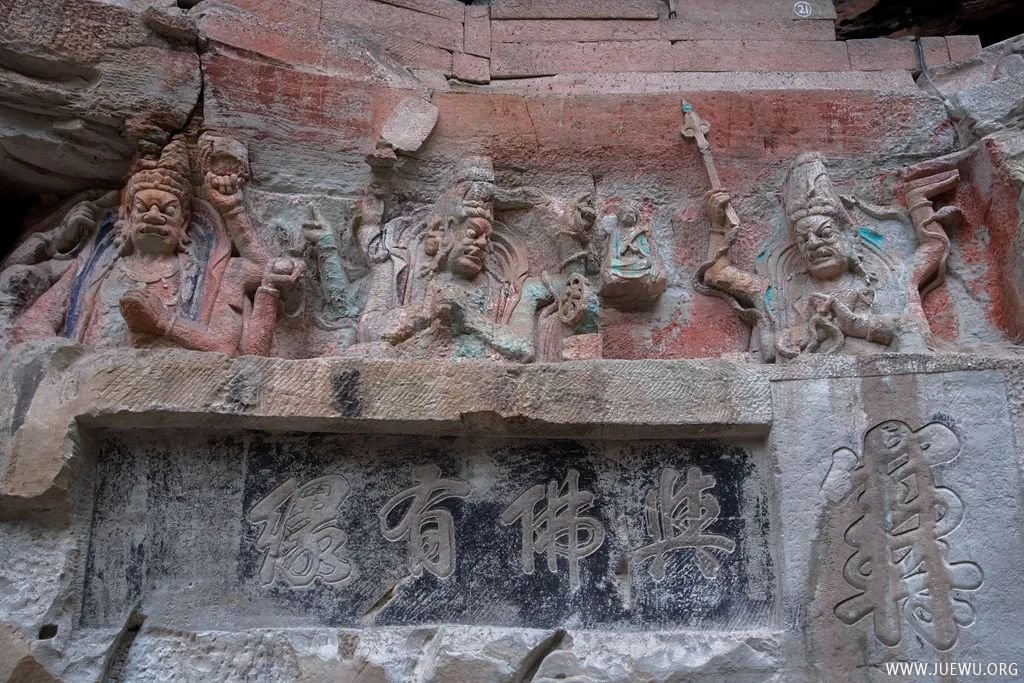 造像有“护法神”“六道轮回”“广大宝楼阁”“华严三圣”“千手观音”“释迦涅槃圣迹”“释迦降生”“孔雀明王经变”“毗卢道场”“父母恩重经变”“大方便佛报恩经变”“观无量寿经变”“六耗图”“地狱变”“柳本尊行化道场”“十大明王”“圆觉道场”“牧牛道场”等。在每幅作品中,多数刻有经文、偈语和颂词等。