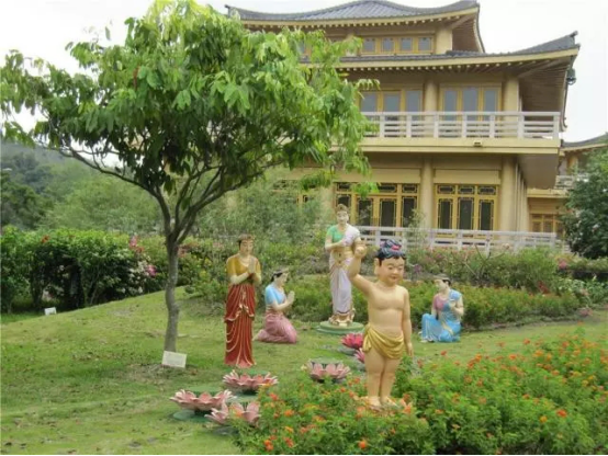对园艺布置,在图形的规划设计上,大量运用曲线线条,曲线代表柔和,佛法教大家要柔和,线条是有情义,有智慧,有想象,有美感的象征,用曲线来表现生命中柔和。现代人较刚强,较容易动怒生气;曲线是温柔、温和、祥和的,可引导人心趋向柔软。