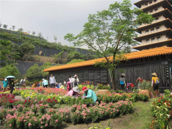 佛馆的园艺,属全面性的规划,此次种植1000多棵花苗,有繁星花、天使花、百日草、小花紫薇、巨大牡丹等代表欢迎大家的莅临。希望来佛馆的信徒或游客看到这些鲜艳夺目的花都能心生欢喜。