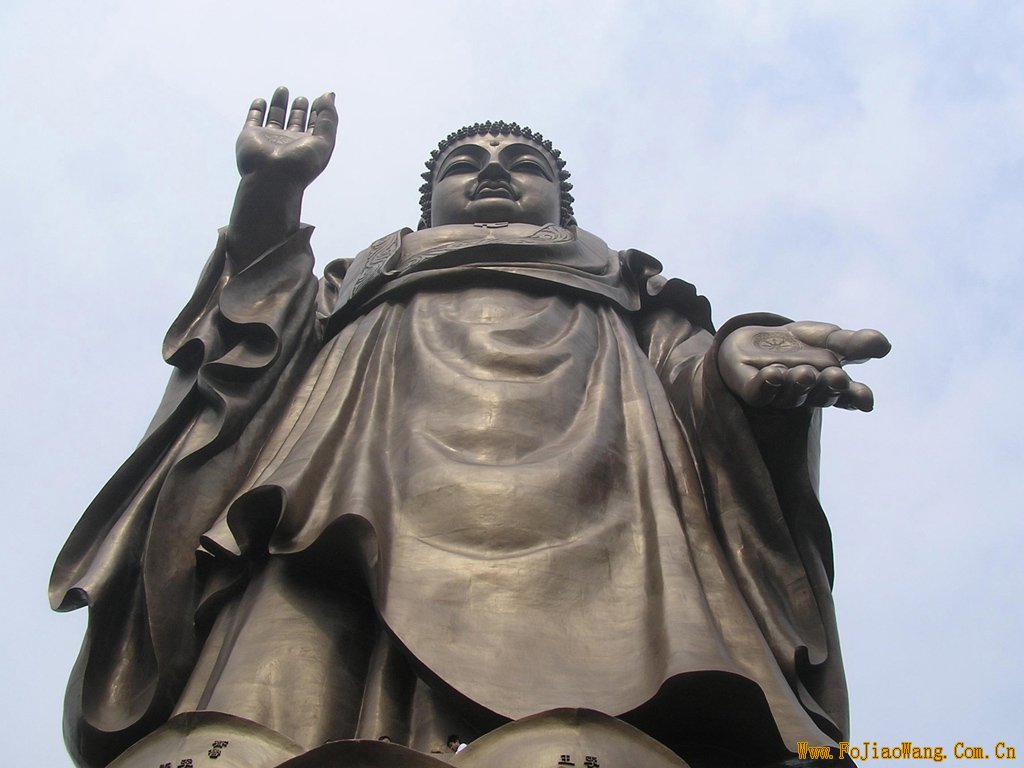 佛佗住世之景;信众云集,焚香顶礼,尽显我佛归心之德。开光当日,从凌晨四时起,各地信众络绎而来,自市区至马山,车流绵延二十余公里,持续近四个小时。是日,瑞霭低垂,随着轻风在大佛周围缓缓舞动,随着大法师曼妙的经声,祥云飘升,雾霭尽散,佛祖慈颜显现:双眉半弯,似笑未才智;慈目微闭,欲语先闻。数万信众虔诚礼拜,默许心愿,法喜盈会,尽显吉祥。大佛开光现场均原样保留,开光录相不久将循环播放,以使更多未能亲临开光现场的参拜者得以领略开光盛况,共结法缘、同沾法喜!大佛采用锡青铜材料铸造,除因青铜件持久永恒外,更重要的是青铜艺术是源于古典艺术精粹,同时也是中华民族传统文化中极为灿烂的一部分.青铜艺术的古朴素雅和优美细致,在世界上享有崇高地位。