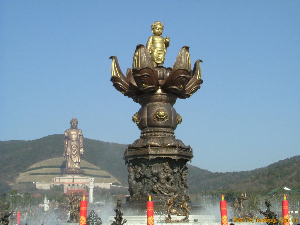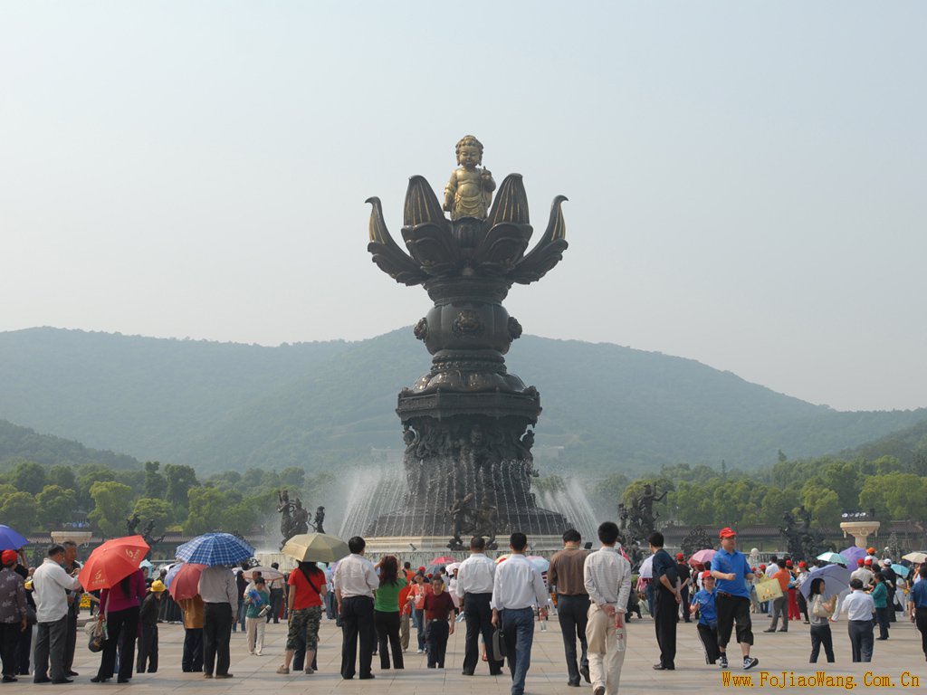 佛经有云:凡新佛像落成,必得经过开光,其神圣意义方始具备。灵山大佛开光盛典由当今世界三大教派高僧大德共同主持。现场由万盆鲜花,千米黄绢妆点。五百米朝圣之路遍插佛旗,二百一十八级登云道满植金菊,千棵乔木黄布裹身,万羽信鸽绕佛飞翔。梵音袅袅,鼓乐交鸣,再现